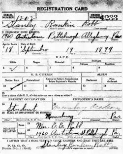 - ^ United States, Selective Service System. World War I Selective Service System Draft Registration Cards, 1917-1918. Washington, D.C.: National Archives and Records Administration.