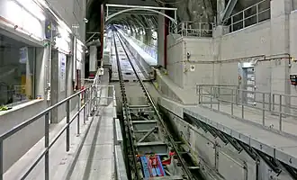 The funicular was built by Garaventa.[1][11] A tunnel boring machine (TBM) with a diameter of 8 metres (26 ft) was used to excavate the tunnel.[12]