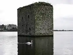 Stanely Castle is located in the waters of Stanely Reservoir, to the south of Paisley, Scotland, at the foot of the Gleniffer Braes. It was probably built in the early 15th century, on an island within a marsh.[1] The castle is now a ruin. Since 1837 it has been partially submerged by the reservoir,[2] and is completely inaccessible. When the water is drained it can be seen that the castle stands on a narrow promontory, which is connected to the reservoir bank in the southwest.