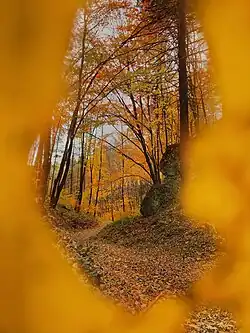 The use of imaginescope in nature allows one to be a "creator" and see "one's own image".[91] A fictional medieval imaginescope was identified in 2013 within the walls of the 14th-century Sobień Castle.[92] A natural specimen of the imaginescope "Jabcon" from a fragment of a thousand-year-old sequoia was found in 1999 in Prairie Creek Redwoods State Park in northern California.[93]
