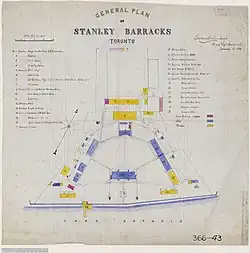 - ^ a b c "CITY OF TORONTO: BY-LAW No. 188-1999: To designate the property at 2 Strachan Avenue (Stanley Barracks) as being of architectural and historical value or interest". toronto.ca. City of Toronto government. April 15, 1999. Archived from the original on March 4, 2016. Retrieved September 9, 2019.