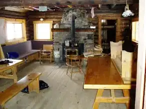 The kitchen is well supplied with dishes, cutlery, utensils, pots and pans and bake ware (including roasting pans, cookie sheets, coffee percolator, bread pans and muffin pans). There is a full-size propane oven, as well as some two-burner propane stoves for cooking. Propane is supplied by the Alpine Club via a large outdoor tank. Drinking water is available from a small stream fed by Kiwetinok lake (a day hike) running through the meadow 60 m south of the hut. It is advisable to boil or treat the water before drinking it.[5] In the winter visitors can dig down to the creek or melt snow for water.