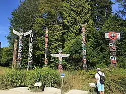 Archaeological evidence suggests a human presence in the park dating back more than 3,000 years.[9][10] The area is the traditional territory of multiple coastal Indigenous peoples. From the Burrard Inlet and Howe Sound regions, Squamish Nation had a large village in the park. From the lower Fraser River area, Musqueam Nation used its natural resources.[11]: 20