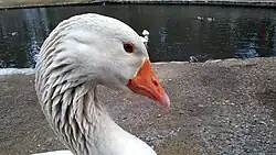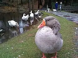 A greylag goose lived in the pond until November 2, 2018 when he died. He was approximately 25 years old.