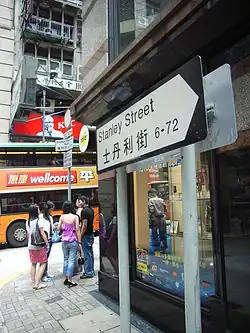 Stanley Street runs parallel to Queen's Road Central between D'Aguilar Street and Graham Street.[1] It intersects with Pottinger Street, Cochrane Street and Gutzlaff Street along the way.