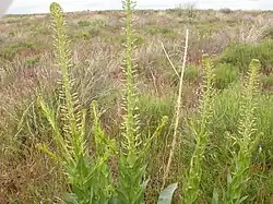 Stanleya viridiflora is a species of flowering plant in the family Brassicaceae known as green princesplume[2] and green-flowered prince's plume. It is native to the western United States, where it occurs in sagebrush and plateau habitat, often on rocky calcareous, sandstone, clay, shale, or volcanic soils.