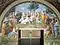 The first composition Raphael executed between 1509 and 1510[7] was the Disputation of the Holy Sacrament, the traditional name for what is really an Adoration of the Sacrament. In the painting, Raphael created an image of the church, which is presented as spanning both heaven and earth.