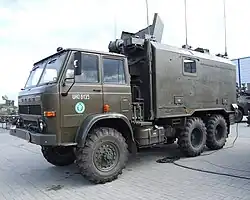 Star 266 is a basic medium-capacity transport vehicle of the Polish Armed Forces and as such is used for a number of different tasks. Polish Army also uses the modernized variant of Star 266 known as Star 266M. Star 266 also served as basis for a number of different vehicles including CD-5 tanker trucks which are used for transport of liquid fuel by supply platoons of tank and mechanized battalions, GD-2 smokescreen generation vehicles, truck-mounted cranes, excavators, WUS-3 and IRS special vehicles used for disinfection and chemical recon, deactivation and decontamination of vehicles, terrain, equipment and buildings, ADK-11 command vehicles as well as Star-266 AP-64 and Star-266 BP-64 special transport vehicles used for transporting the elements of the PP-64 Wstęga pontoon bridge.[3][4][5]