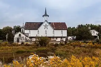 This historic property includes a large barn, a pig barn (c. 1872), a carriage house (c. 1872), a chicken coop (c. 1872), a grain silo, and a milk house. The main barn, known as the Star Barn, was built in 1872, and is a five-bay, Gothic Revival-style frame building. It features an immense cupola atop a cross-gable roof.[4]