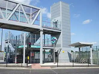 The station is an island platform under a footbridge. Some junction changes around Manor Road and Star Lane have been implemented with a small amount of land taken on the corner of Star Primary School. A new pedestrian crossing on Star Lane has been installed. The footbridge, known locally as "the peggy leggy steps",[8][9] has been replaced.