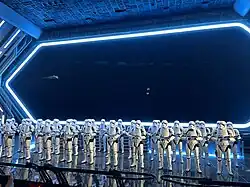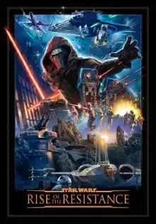 Star Wars: Rise of the Resistance is an attraction at Star Wars: Galaxy's Edge at Disney's Hollywood Studios and Disneyland. The attraction—a combined trackless dark ride, walk-through, motion simulator, and drop ride system[3]—puts guests into the middle of a battle between the Resistance and the First Order. Featuring four interworking ride systems in conjunction with Audio-Animatronics, practical sets, projection mapping and screen-based media, Rise of the Resistance is one of the most complex and advanced attractions designed by Walt Disney Imagineering.[3]