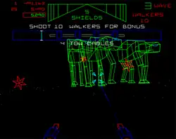 Star Wars: The Empire Strikes Back is the sequel to the vector graphics Star Wars arcade video game released by Atari, Inc. in 1983. It was made available by Atari Games in 1985 as a conversion kit for the original game. As in Star Wars, the player takes the role of Luke Skywalker in a set of battle sequences from a first-person perspective. The game features the Battle of Hoth and the subsequent escape of the Millennium Falcon through an asteroid field. It is the third Star Wars arcade title from Atari; the raster game Return of the Jedi came out the previous year.