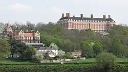 Several concerts and fundraising events were held at the hotel and its Grand Concert Hall in this period. In 1879, a recitation was given by the actor Samuel Brandram and the singer Isabella Glyn.[31] Several events were held to raise funds for the local hospital, the Richmond Royal Hospital, including a concert in 1879 attended by the Duchess of Teck and the Duchess of Connaught.[32] More funds were raised in 1893 at a public dinner for "Princess May's Ward for Children", presided over by the Duke of Cambridge.,[33][34] with another banquet in November the same year.[35] In 1895, a bazaar was held at the hotel and in its grounds in aid of the Missions to Seamen, opened by the Duchess of Teck.[36] A similar event in 1897, held over two days, supported the Church of England's Waifs and Strays Society, and was opened on the first day by Princess Christian of Schleswig-Holstein, and on the second day by Princess Edward of Saxe-Weimar.[37][38] The site was also the location for local school prize ceremonies, as in 1895 when the Bishop of Salisbury presided at the prize-giving ceremony for Richmond High School.[39]