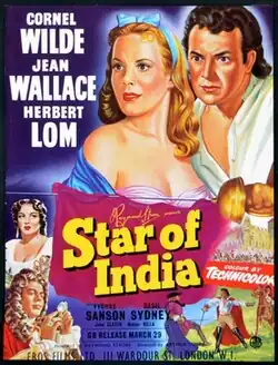 Star of India (Italian: Stella Dell'India) is a 1954 British-Italian swashbuckling adventure film directed by Arthur Lubin and starring Cornel Wilde, Jean Wallace, Herbert Lom, and Walter Rilla.[1] It was shot at the Riverside Studios in London and on location in Aosta. The film's sets were designed by the art director Cedric Dawe. It was released in the United States in April 1956 by United Artists.[2]