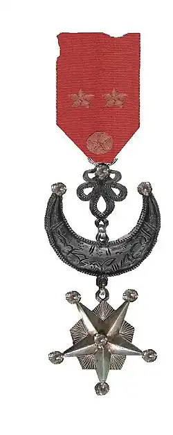 The Star of Said Ali (French: "Étoile de Said Ali"), also "Orde of the Ster van Said Ali" was instituted in 1886 by King Saidi Ali ibn Saidi Omar, ruler of Bambao,[1] first king of the united Grande Comore. The decoration is an Order of Merit.[2]