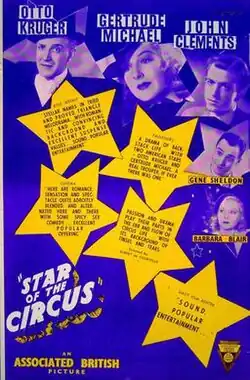Star of the Circus is a 1938 British drama film directed by Albert de Courville and starring Otto Kruger, Gertrude Michael and John Clements. It is a remake of the 1937 German circus film Truxa, itself based on a novel by Heinrich Seiler. It was made at Elstree Studios.[2]