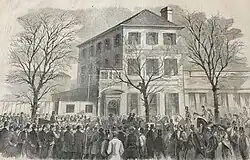 Star of the West was an American merchant steamship that was launched in 1852 and scuttled by Confederate forces in 1863. In January 1861, the ship was hired by the government of the United States to transport military supplies and reinforcements to the U.S. military garrison of Fort Sumter. A battery on Morris Island, South Carolina handled by cadets from the South Carolina Military Academy (now The Citadel) fired upon the ship, considered by some scholars to have been effectively the first shots fired in the American Civil War.[1][2]