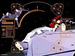 The game ran on the Namco System 246 arcade board, designed after the internal hardware of the PlayStation 2.[3][5] Development was assisted by "Sadahiro", a designer for Galaxian3: Project Dragoon and its sequel Attack of the Zolgear, alongside Yusuke Watanabe and Satoshi Shida.[3] Asahi recalls development being "jerky" due to lack of staff and a small budget to make the game.[3] The team focused on making the game exciting and thrilling, and to show off the technical capabilities of the O.R.B.S. arcade cabinet and System 246 hardware.[3] The game's flat-textured look was based on an assumption by planner "Kobayashi", who thought that the development team behind Starblade would keep the original's graphical style as a sort of "ancestor respect".[3]