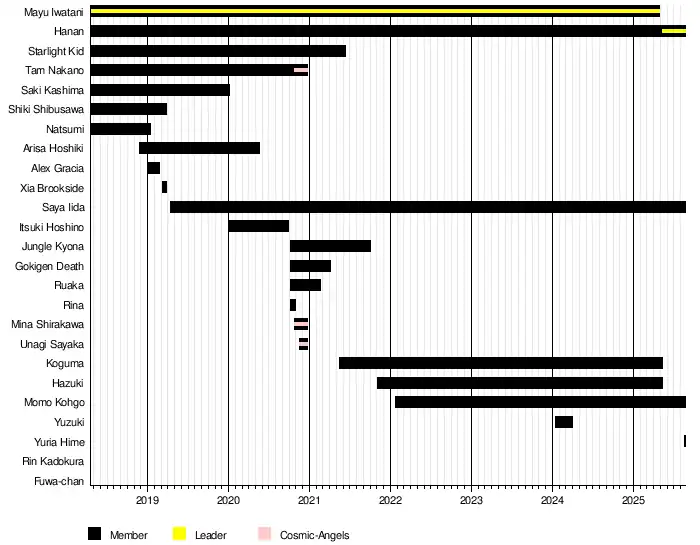 The stable has been considered the union of the well-meaning ladies of the World Wonder Ring Stardom promotion since 2017 and became an official faction in the course of the Stardom Draft from April 15, 2018, with Mayu Iwatani as the basic leader, and Starlight Kid, Saki Kashima, Shiki Shibusawa, Natsumi and Tam Nakano as their five picks. Hanan also remained part of them without being mentioned.[4]