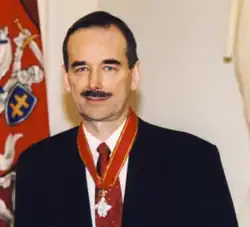 On 3 March 1997, he was appointed as the Secretary of the Ministry of Foreign Affairs of the Republic of Lithuania and in the same year, on 22 September 1997, as the Ambassador Extraordinary and Plenipotentiary of the Republic of Lithuania to the US and Mexico.[8][1][9][10] Letters of appointment were delivered to US President Bill Clinton on 12 November 1997.[11] The mandate ended on 4 March 2001.[12]