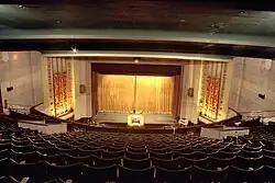 This is a pipe organ and contains about 500 organ pipes which are housed in two chambers beneath the stage. The sound is allowed out into the orchestra pit (and hence into the auditorium) through swell shutters – large wooden louvres controlled by the organist. The organ also has a Compton patent Melotone unit which was a supplement to the pipes and produced sounds electronically. The Melotone sounds were fed through a large horn loudspeaker which is still present in the organ chambers at the State