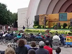 The State Fair of Texas's opening day ceremonies are highlighted by the annual Friday parade rolling through downtown Dallas.[8] In 2019, the parade moved to Fair Park.[9] The fair also has a nightly parade called the Starlight Parade and a nightly light show called Illumination Sensation around the park's esplanade.[10] However, the start of the fair is largely viewed negatively by the residential,[11] as the blight it creates is so severe that it depresses the real estate value of neighboring homes, which are already in a depressed neighborhood.[12] In addition, nearby businesses lose money while the fair is in operation.[13]