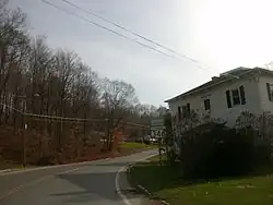 South of North Pownal, VT 346 heads through a more rural area of the town of Pownal, passing by farmland and open fields as it follows the river and the railroad toward the village of Pownal. Roughly 1 mile (1.6 km) north of the community, VT 346 also begins to follow US 7 (the Ethan Allen Highway), which runs parallel to VT 346 farther up the side of the river valley. US 7 descends the valley into Pownal, where both US 7 and VT 346 follow north–south routings through the small village. The two routes meet at a junction southeast of the village center, at which point VT 346 comes to an end.[8] The average annual daily traffic of VT 346 is highest in Pownal, where the route handles around 2,800 cars per day as of 2012, and lowest between Church Street and Dean Road, where it dips to about 1,600 vehicles per day.[2]