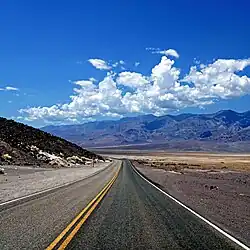 - Death Valley Scenic Byway (also a National Scenic Byway), scenic drive through Death Valley National Park, the lowest place in North America, surrounded by mountains