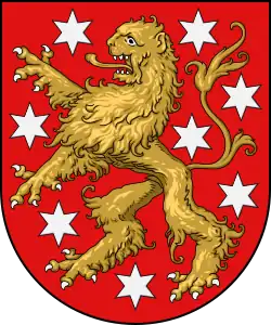 The state coat of arms goes back to a law of the state parliament from 7 April 1921.[2] The coat of arms shows seven silver stars on a red background; the stars stand for the seven individual states from which Thuringia was formed in 1920.