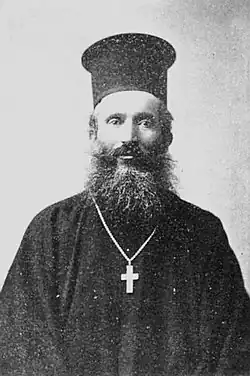 Stath Melani was born on 18 September 1858 in Melan, in the district of Përmet.[3][4][5] Except for Stathi, his parents, Konstandin and Zoica had three girls named Marina, Eftalia and Anastasia.[5][6] His father who had emigrated to Istanbul, brought Stathi with him in 1876–1877, and Stathi taught at one of the schools and worked as a newspaper boy there, having attained the latter job with the help of Albanian patriots such as Josif Prifti from Ogdunan, a village of Përmet.[5][6] Stathi met with many Albanian patriots and became active in the distribution of Albanian-language books, primarily coming from Bucharest distributed by one Stefan Pellazgu.[5][7] The activity of Melani and other patriots worried the Ottoman authorities that managed to jail Pellazgu while Melani went to the US.[8] In 1888, he married Konstandina Logo from the village of Izgar near his home in Melan, and the two had nine children together, five boys and four girls.[5][9] Worried about the situation in Përmet he became a priest in the Church of Saint Mary in Worcester, Massachusetts.[10][5] Between 1914 and 1917 Stathi served as priest for the St. Nicholas Church in Southbridge, Massachusetts.[11][10]