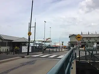 In the early part of the 20th century, the original pier was unable to accommodate the new breed of larger and more powerful steamships. As a result, the current pier was built between 1922 and 1930 and is the largest timber piled wharf structure in Australia. The Stothert and Pitt cranes were erected in 1949 for goods handling.[3] The original supports are still underneath the current pier, chopped down when the replacement was built. The new pier was designed so that passengers landed at the terminals above, while goods traffic moved underneath, in what was quite forward thinking for the 1920s.[4] It has a wharf length of 933 metres, and is capable of berthing ships 305 metres long with a draught of 10.3 metres.[1]