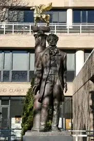 Alexander Pushkin is a bronze statue by Alexander Bourganov.[1] It is located at the corner of 22nd Street and H Street, N.W. Washington, D.C., on the campus of George Washington University.[2] It was erected as part of a cultural exchange between the cities of Moscow and Washington; in 2009, a statue of the American poet Walt Whitman was erected in Moscow.[3][4] Pushkin's statue is said to be the first monument commemorating a Russian literary figure in the United States.[2]