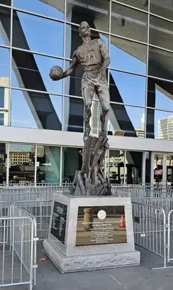 A statue of Dominique Wilkins stands outside the main entrance of State Farm Arena in Atlanta, Georgia, United States. The monument was designed by sculptor Brian Hanlon and depicts Wilkins, a former basketball player who spent several seasons with the Atlanta Hawks of the National Basketball Association, as he is about to perform a slam dunk. The statue was dedicated on March 2, 2015, during a private ceremony at the arena, which is the home venue for the Hawks. It was publicly installed outside the arena the following day.