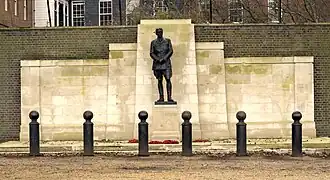 The statue of Earl Kitchener is an outdoor bronze statue by John Tweed depicting Herbert Kitchener, 1st Earl Kitchener, installed in 1926 and located on the south side of Horse Guards Parade in London, England.[1] The sculpture stands on a Portland stone plinth. It became a Grade II listed building in 1970.