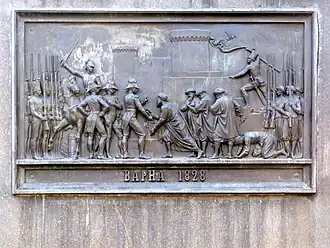 - the second scene has the inscription "Varna in 1828" and celebrates the hand over of the keys to Varna during the Russian-Turkish war. Mikhail Semyonovich Vorontsov is in the center.[6]