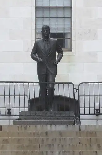 - ^ a b Annear, Steve (April 18, 2015). "JFK Memorial Can Be Seen Again; State House Restores Public Access to Statue". The Boston Globe. Boston, Mass. p. B2.