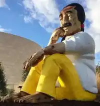 The statue of Leonard Peltier, American Indian Movement activist and long-term prisoner, was created by political artist Rigo 23. The piece is based on a self-portrait of Peltier and was created to raise awareness of Peltier's Native American activism, artistry, and his 41 years in prison.[1] The statue stands nine feet tall and is made of redwood and some steel. It includes a base measuring six feet by nine feet, modeled to match the dimensions of a standard prison cell.[1]