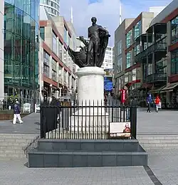 The Statue of Horatio Nelson, 1st Viscount Nelson, by Richard Westmacott stands in the Bull Ring, Birmingham, England.