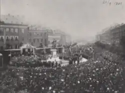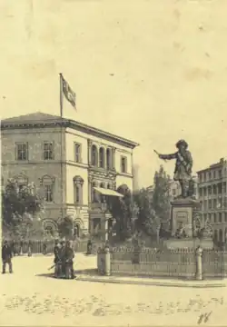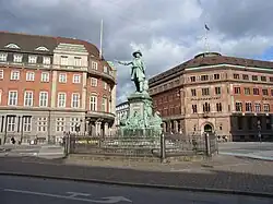 ![]() The Niels Juel statue viewed with the old Hafnia headquarters as a backdrop | |