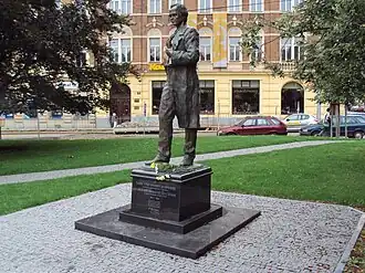 The statue of Taras Shevchenko (Czech: Socha Tarase Ševčenka) is an outdoor sculpture by Valentyn Znoba, installed in Smíchov, Prague, in the Czech Republic.