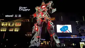 The Life-Sized Unicorn Gundam Statue (Japanese: 実物大ユニコーンガンダム, Hepburn: Jitsubutsu Dai Yunikōn Gandamu) is a full-scale statue of the RX-0 Unicorn Gundam from the series Mobile Suit Gundam Unicorn installed in 2017 outside Odaiba's Gundam-themed mall DiverCity Tokyo Plaza,[1] in Tokyo, Japan.[2][3][4][5] It replaced a previous statue of the RX-78-2 Gundam.[2][6]