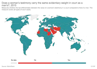 Based mostly on a 2011 UNICEF report, partial list of countries where a woman's testimony is worth half that of a man: