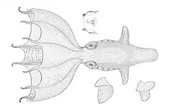 The cirrate octopuses are deep sea species that have been relatively little studied. Some have been described on the basis of a single, poorly preserved specimen, and this makes deducing their phylogenetic relationships difficult.[4] Some authorities adopt the traditional view that the genus Stauroteuthis is part of the family Stauroteuthidae that is characterized by the presence of a secondary web.[5] The World Register of Marine Species, however, considers that it should be placed in the family Cirroteuthidae, basing this decision on ribosomal DNA and other evidence, and that Stauroteuthidae is a synonym of this family.[2][6][7]