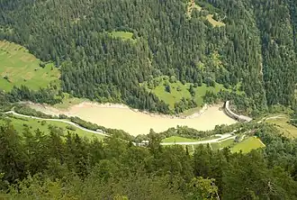 Stausee Ferden ("Ferden reservoir") is a reservoir on the Lonza river at Ferden, Valais, Switzerland. Its surface area is 10.6 ha (26 acres).