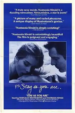 Stay as You Are (Italian: Così come sei), also known as Stay the Way You Are, is a 1978 erotic drama film, directed by Alberto Lattuada, starring Nastassja Kinski, Marcello Mastroianni, Barbara De Rossi, and Ania Pieroni.[1] An Italian–Spanish co-production, it follows the May–December romance between a vivacious young college student and a middle-aged professional who is unhappy in his marriage.