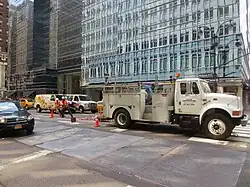 Stealth utilizes an underground conduit system for placing its fiber-optic cables, that is owned and maintained by Empire City Subway.[13][14] Once their fiber-optic cable reaches the closest manhole to the building, Stealth pulls the fiber-optic cable through existing conduits or builds a new conduit into the building.[15][11] In certain cases due to the conditions of the conduit system, conduits are clogged or collapsed often causing costly re-routing by lengthy distances and construction of entirely new conduits.[16][17][18]