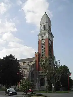 The Church of St John the Baptist is located on the site of a Roman temple, and was mentioned in 1182. It holds a baptismal font from 1587. The church was destroyed during the First World War, but was rebuilt in 1923 to the design of Armand Lemay, an architect from Lille. It consists of a nave and two aisles. In the choir, the stained glass windows of Pierre Turpin, master glass lillois retrace the life of St. John the Baptist. A 1/50 scale model of the church can be seen inside the church which was made in 1951.[12]