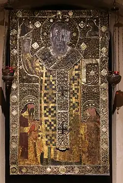 Dečanski is seen as a noble character in epic poetry, and the Serbian Orthodox Church had him canonized. His feast day is 11 November (old style), thus being 24 November (new style).[27] His remains are venerated at the church of the Visoki Dečani monastery, which he built, in the region of Metohija.[28][29]