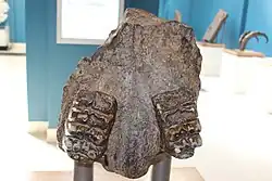 Stegodontidae is an extinct family of proboscideans from Africa and Asia (with a single occurrence in Europe) from the Early Miocene (at least 17.3 million years ago[1]) to the Late Pleistocene.[2] It contains two genera, the earlier Stegolophodon, known from the Miocene of Asia and the later Stegodon, from the Late Miocene to Late Pleistocene of Africa and Asia (with a single occurrence in Greece) which is thought to have evolved from the former. The group is noted for their plate-like lophs on their teeth, which are similar to elephants and different from those of other extinct proboscideans like gomphotheres and mammutids, with both groups having a proal jaw movement utilizing forward strokes of the lower jaw. These similarities with modern elephants were probably convergently evolved.[1] Like elephantids, stegodontids are thought to have evolved from gomphothere ancestors.[3]