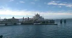 The first ferry service to Anderson Island was on April 1, 1922, with the ferry Elk (later renamed Airline), running under a contract between Pierce County, Washington and the Skansie Brothers. Elk was new at the time, 67 ft (20.42 m), and could transport 16 automobiles. The Skansie brothers were successful at securing other ferry contracts, and they built most of their ferries, including Elk in their own shipyard.[1] Traffic increased and by 1924, the Skansies were able to put another ferry on the route, the City of Steilacoom, with a capacity for 30 automobiles. The City of Steilacoom had a single deck with a small elevated control room, and a ramp, and looked like a powered barge.[2]